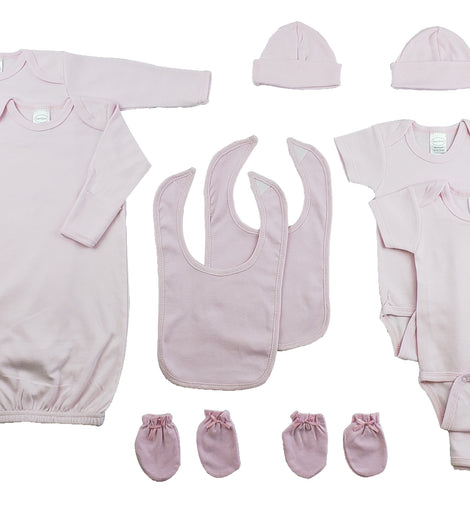Pink Infant Gown (100% Cotton), Pink Infant Gown (100% Cotton), Pink Interlock Short Sleeve Onezie (100% Cotton), Pink Interlock Short Sleeve Onezie (100% Cotton), Pink Interlock Bib (100% Cotton), Pink Interlock Bib (100% Cotton), Pink Infant Mittens (Jersey), Pink Infant Mittens (Jersey), Pink Baby Cap (100% Cotton), Pink Baby Cap (100% Cotton), Pink Receiving Blanket (100% Cotton)